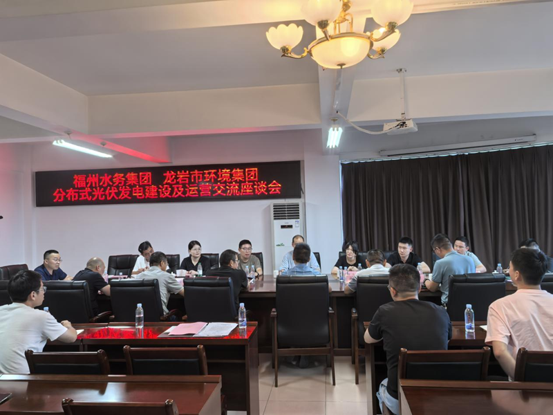 座談會(huì)上,雙方就深化合作、推動(dòng)企業(yè)高質(zhì)量發(fā)展進(jìn)行交流。林炳榮總經(jīng)理詳細(xì)介紹了公司業(yè)務(wù)板塊、生產(chǎn)經(jīng)營(yíng)、科技創(chuàng)新、項(xiàng)目建設(shè)等相關(guān)情況;林江副總經(jīng)理就鐵山污水處理廠光伏發(fā)電項(xiàng)目策劃、設(shè)計(jì)、施工、并網(wǎng)、運(yùn)維等全流程進(jìn)行了全方面的介紹,雙方就相關(guān)領(lǐng)域進(jìn)行了深入的溝通和交流。胡發(fā)勝表示,光伏發(fā)電具有綠色低碳、可再生的特點(diǎn),龍巖市環(huán)境集團(tuán)因地制宜地開發(fā)建設(shè)分布式光伏發(fā)電項(xiàng)目,實(shí)現(xiàn)經(jīng)濟(jì)效益、生態(tài)效益和社會(huì)效益的有機(jī)統(tǒng)一,提供了可借鑒、可復(fù)制、可推廣的經(jīng)驗(yàn)。