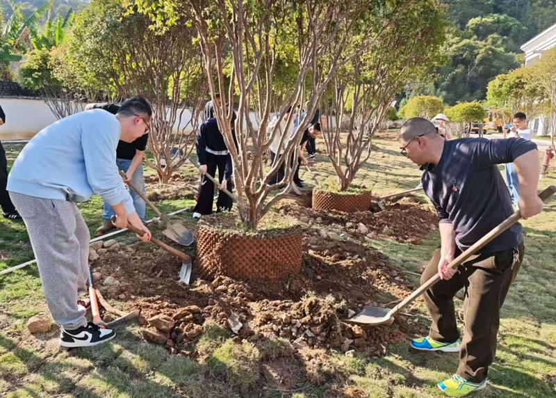 活動(dòng)現(xiàn)場(chǎng),大家按照分組,領(lǐng)取植樹(shù)工具和樹(shù)苗,在專(zhuān)業(yè)人員的指導(dǎo)下,迅速投入到植樹(shù)勞動(dòng)中。黨員同志們揮鍬挖坑、扶樹(shù)培土、提桶澆水,每一道工序都一絲不茍,有效提高團(tuán)隊(duì)協(xié)作意識(shí)和環(huán)保責(zé)任感。經(jīng)過(guò)一番辛勤努力,一棵棵樹(shù)苗在鐵山污水處理廠的廠區(qū)內(nèi)穩(wěn)穩(wěn)扎根,為這片土地增添了勃勃生機(jī)。